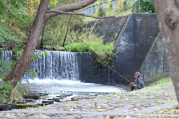 手稲山の麓にある三樽別河畔緑地は、何度かピクニックしている小さな遊水公園です。この日は若い男性がのんびり釣りを楽しんでいて公園には2人きり。まるで貸切のような静けさがありました。