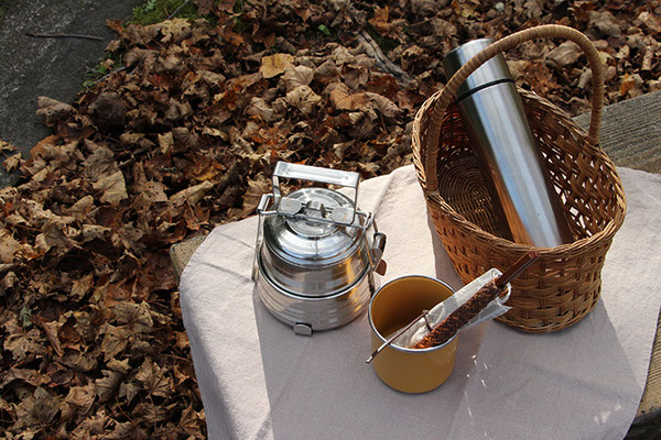 紅葉の季節が終わる前に、どうしてもひとりピクニックがしたくなりました。でも、お弁当を作るのは少し面倒。おやつとコーヒーだけでもいいかなと思っていたとき、ふと思いついたのが「お茶漬けピクニック」。